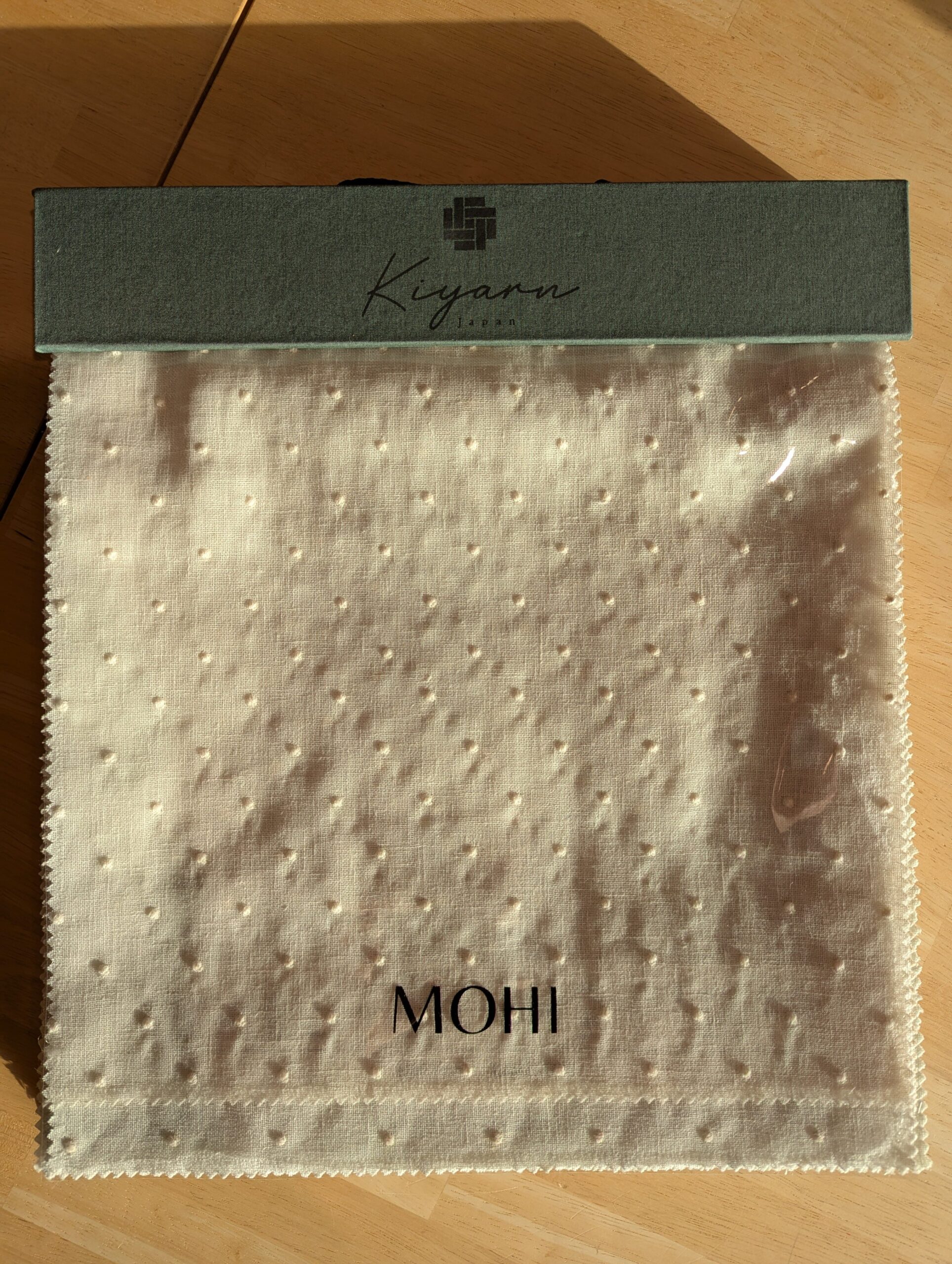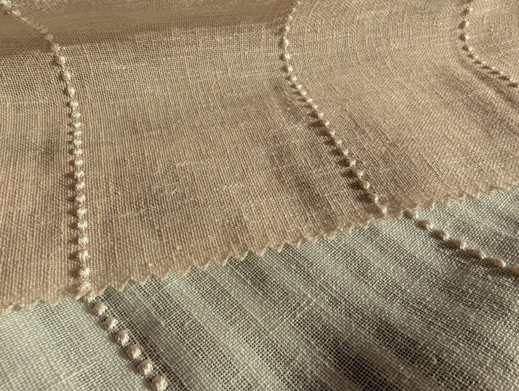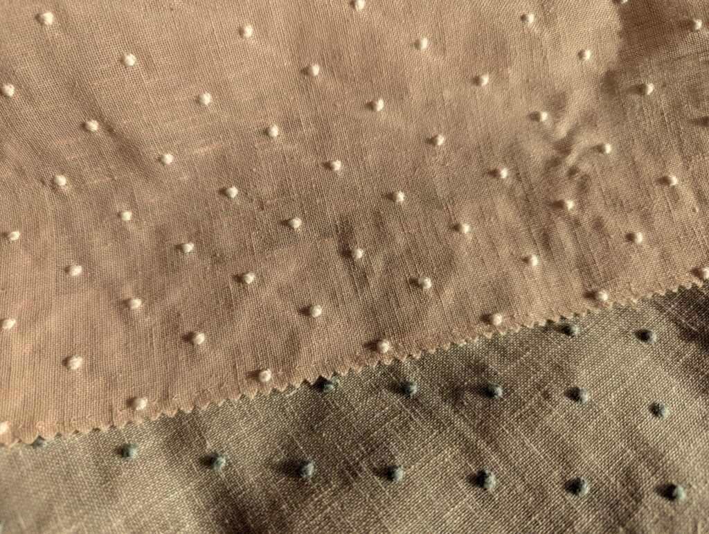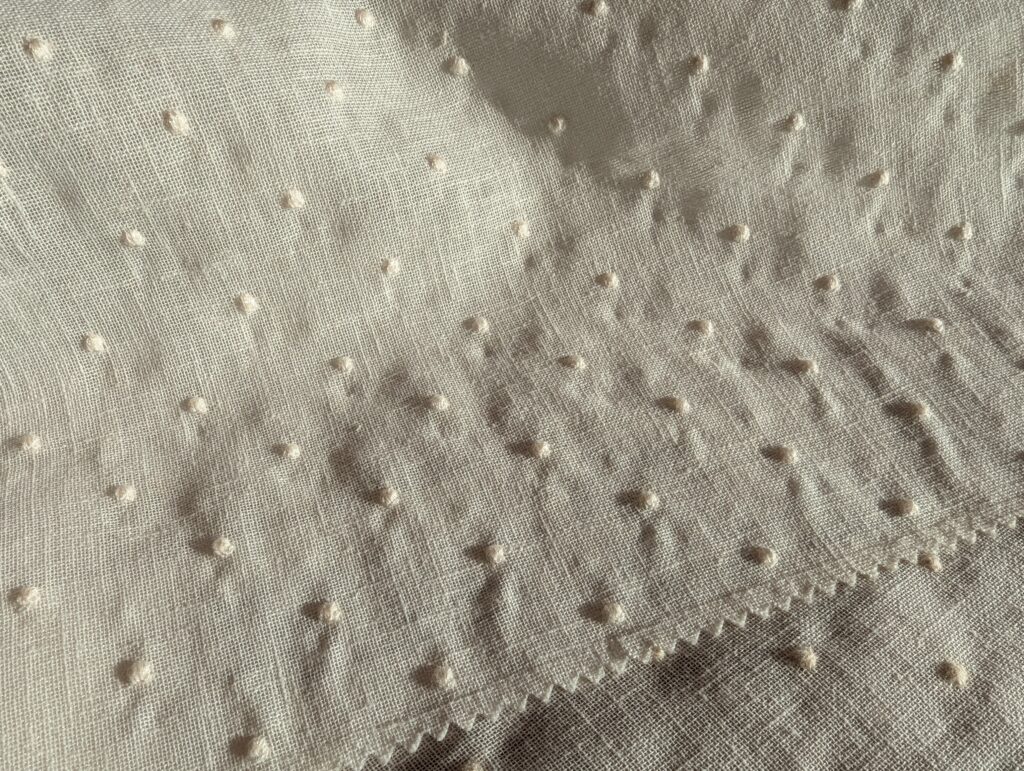 小さいドット刺繍の生地でシンプルな生地にかわいらしさを与えてくれる雰囲気です。