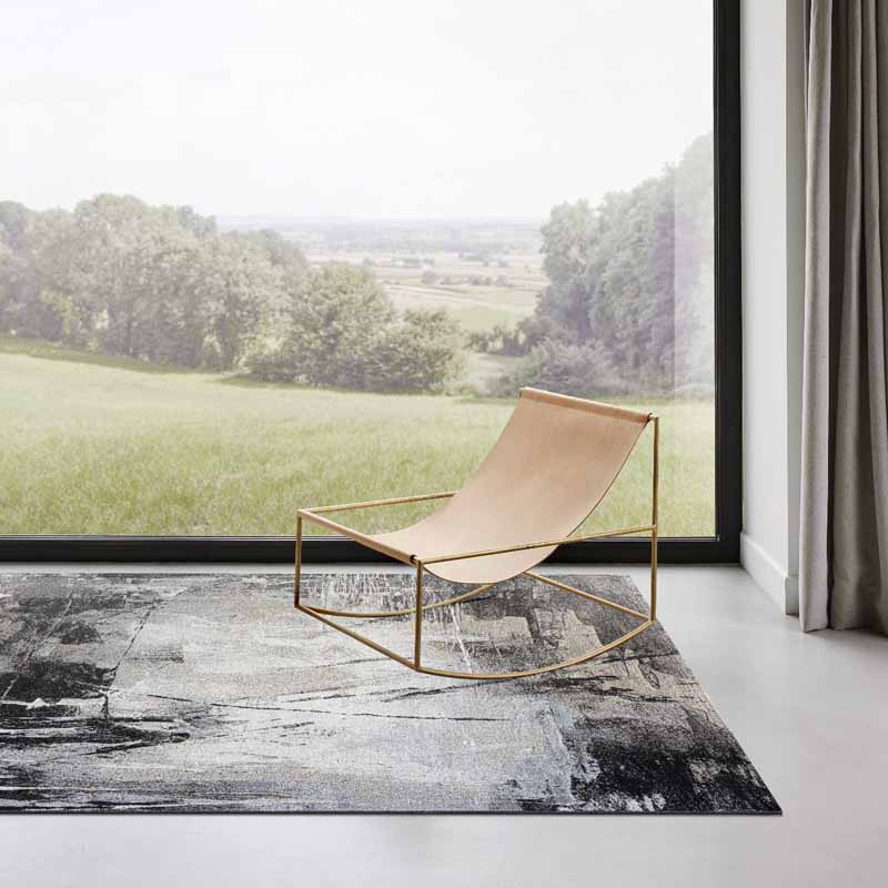 「Graphie(グラフィー)」“書”の美学を現代的に再解釈した、アブストラクト・アートラグ。墨のような黒と、淡く広がるグレーやベージュが織りなすコントラストは、まるで筆の軌跡そのもの。鋭く、そして時に滲む線が静と動のリズムを奏で、空間に奥行きをもたらします。日本の書道を思わせる佇まいと、ヨーロッパ的な抽象性が交差する、感性に響く一枚です。