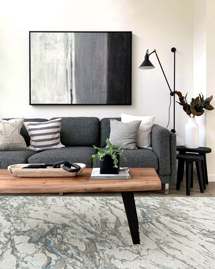 美しいニュートラルカラーとしっかりとした厚みで手触りの良いラグは、空間を包み込み心地よいお部屋を創り出してくれますよ。