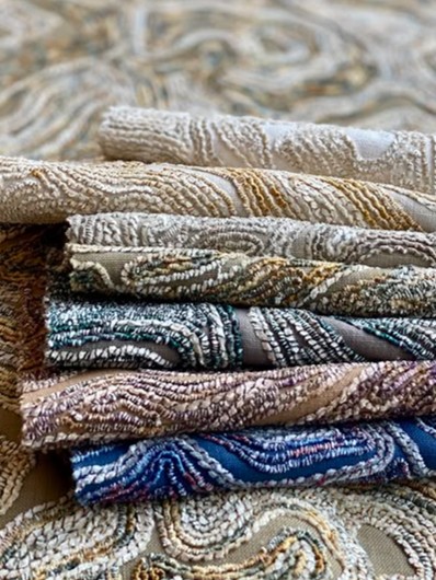シェニール糸の巻き付け方法により、刺繍の表面には柔らかく滑らかな部分とそしてマットな部分と光沢のある部分が生じ、洗練された生き生きとした表情のデザインに仕上がっています。