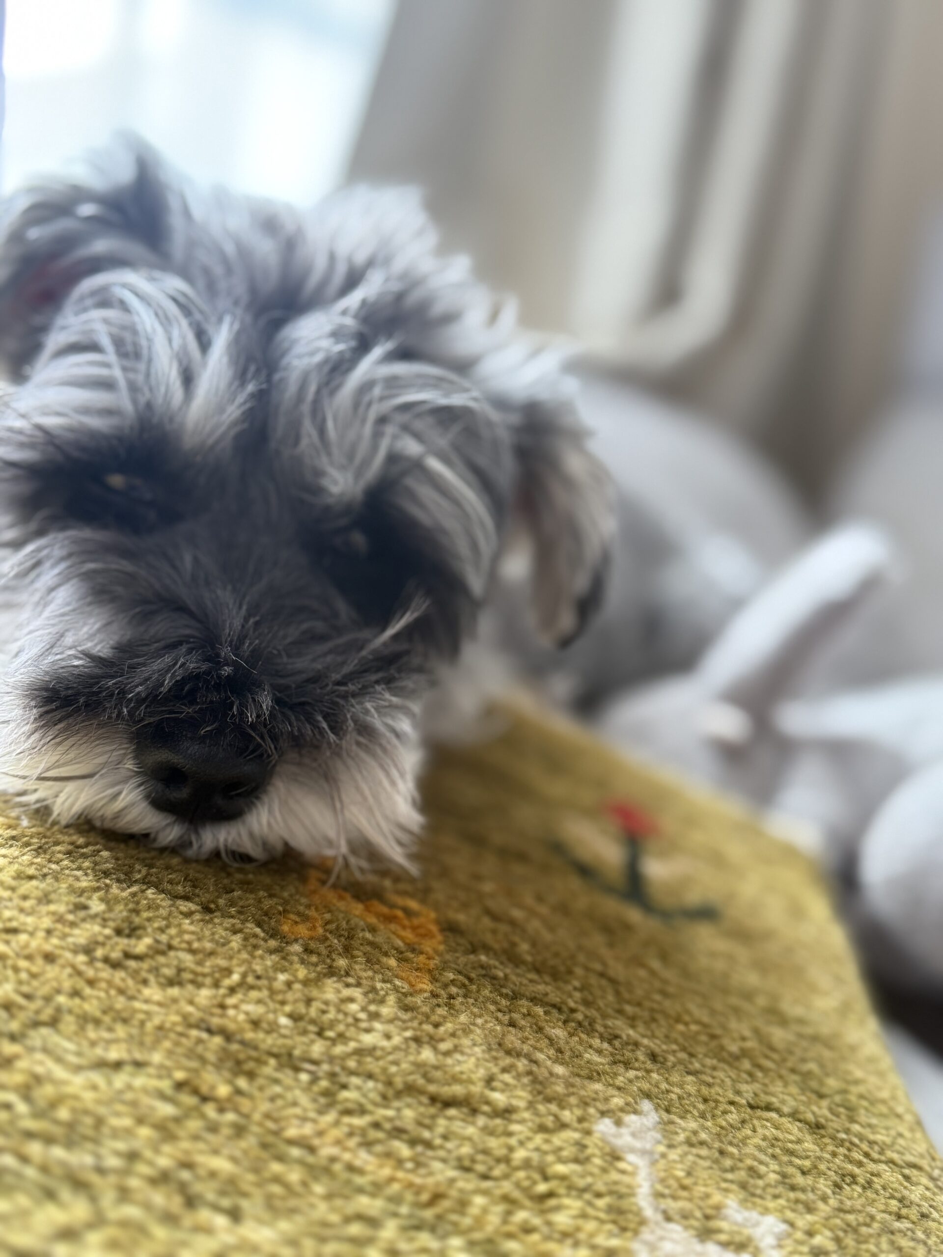 ギャッベは羊さんの毛を使っているので、体温と湿度を調節する力があるため、わんちゃんにも最適です。