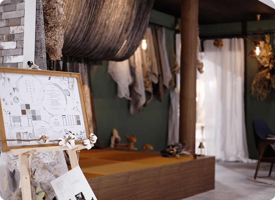 院長先生はじめスタッフの方々の想いや理念を共有させて頂き、リネン生地やサイザル床材など⾃然の素材が楽しめるような素材や⾊合いでご提案しました。