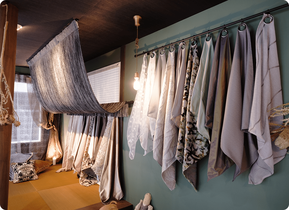 壁紙やカーテン、家具を実際に見て・触って体感することができ、ご希望のインテリアをより明確にイメージすることができます。