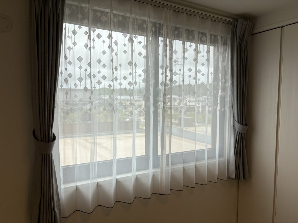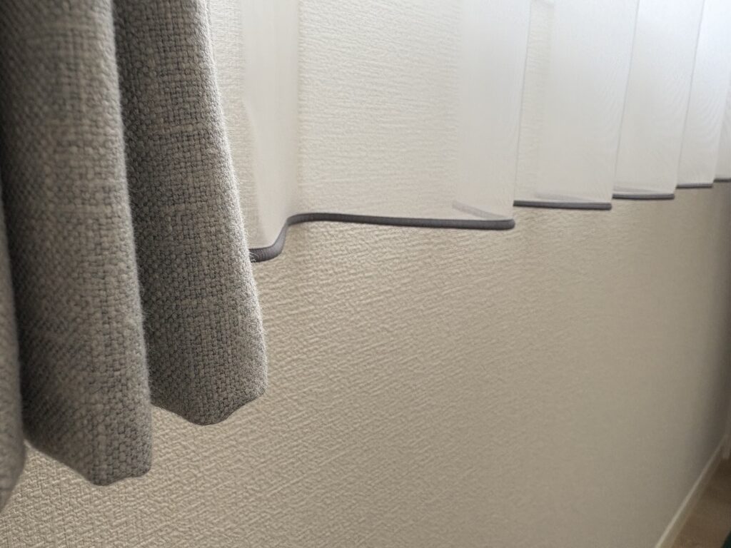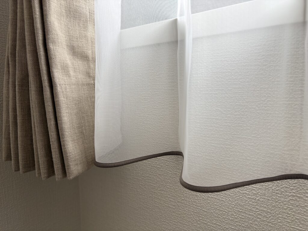 ドレープカーテンの色に合わせ、裾の仕様にもカラーを入れて遊び心を。