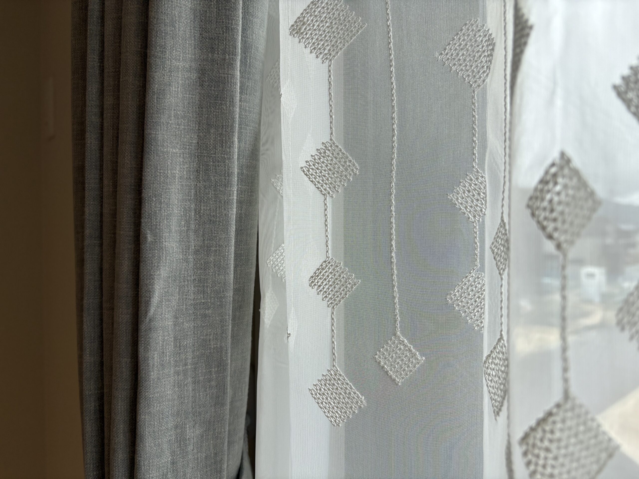 難燃性の刺繍糸を使っているので防炎認定もあり、高層マンションや店舗・施設でもご使用いただけます。