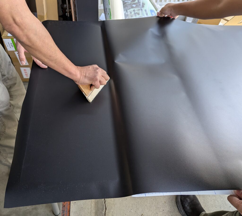 壁紙には同じタイル柄の白と黒の色違いでメリハリのある雰囲気です。