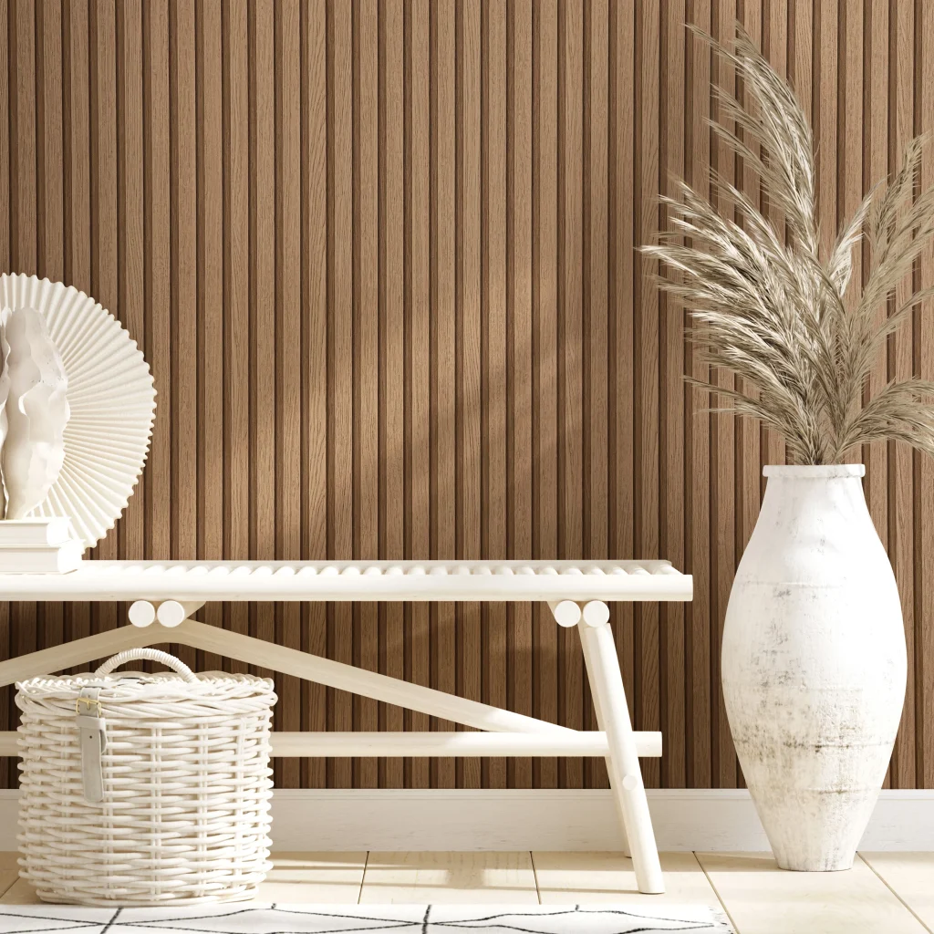 特別な空間を演出するため、アクセントの壁紙はリブウッド柄の輸入クロスを使用しました。
