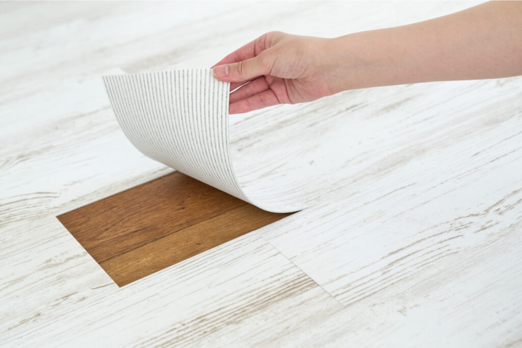 タイル裏面に吸着加工を施しているので、そのままフローリングの上に貼ることができます。傷つきや汚れに強く、接着剤を使わない為、原状回復が必要な賃貸住宅にもおすすめな商材です。