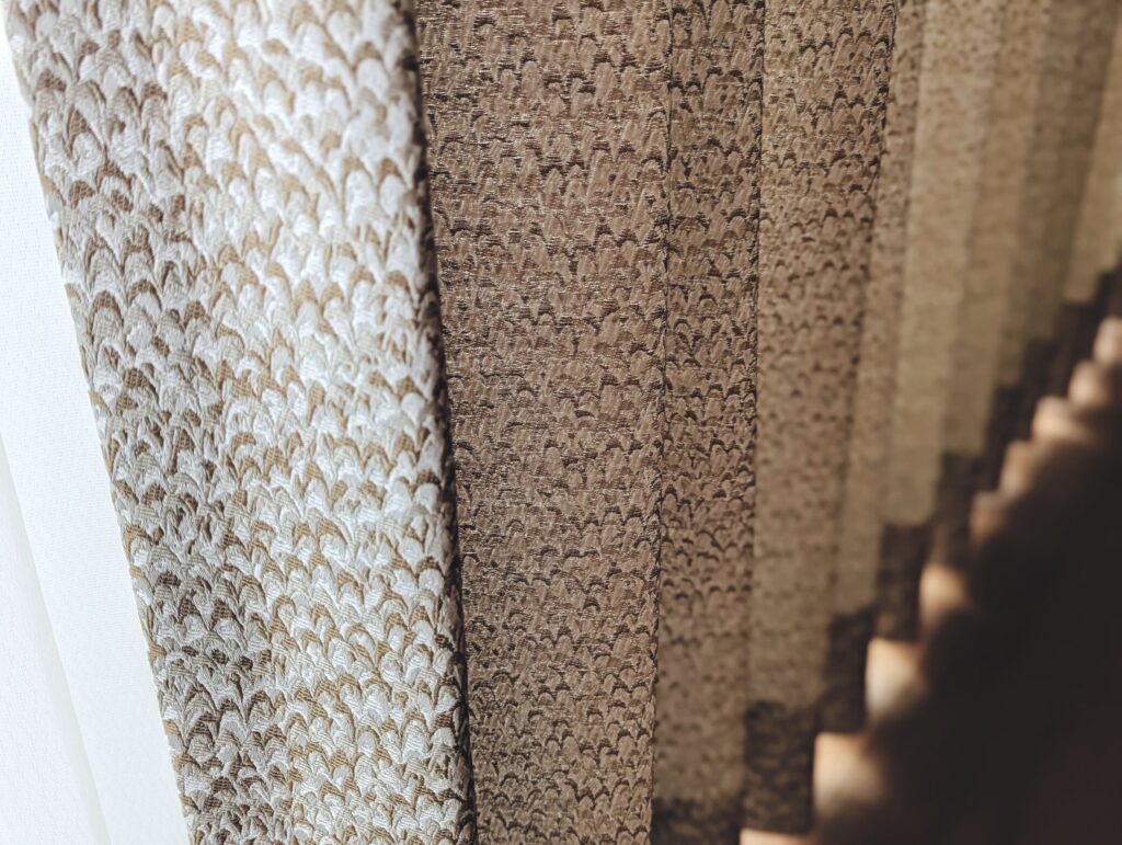 生地自体に厚みや光沢がありますので、昼間の生地の表情と夜の表情が全く異なり素敵でした。