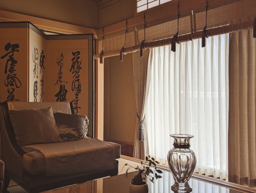 先日和室の縁側のドレープカーテンをご提案させて頂きました。