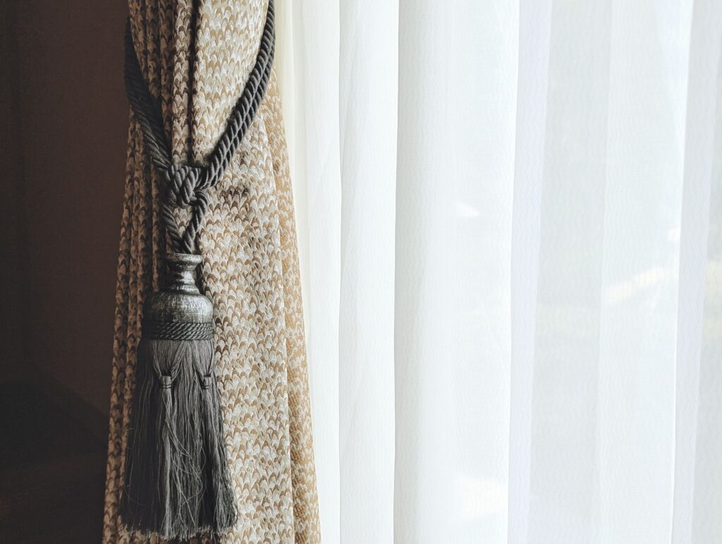 装飾タッセルは存在感のあるFISCBACHER1819よりVeronaを。ボリューム感と重厚感を兼ね備え、タッセル自体の艶が抑えられている為、カーテン生地との相性は抜群でした。