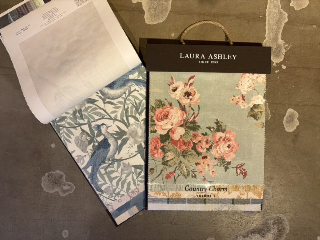 今回、当店にあるローラアシュレイのBOOKをお客様へ見ていただいたときに、「これ!」と目に留まったようで、他にも生地を見ていただきましたが、最終的に一番最初に見た「ローズモア」に決まりました。たくさん検討して、結局一番最初に見たものに決まるのって、あるあるですよね😉素敵な生地を選んでいただき、ありがとうございます♡